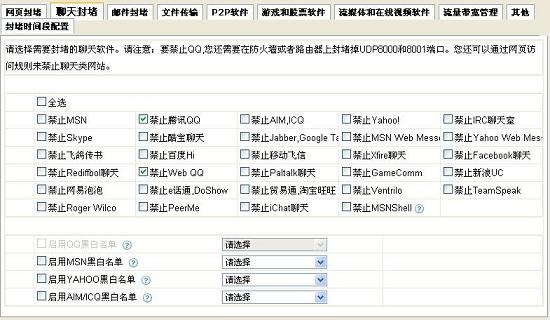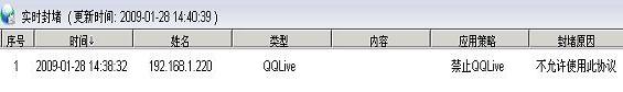 [B]行為管理:[/B]禁止QQ聊天對(duì)話,文件傳輸行為,禁止任何形式的QQ登陸通訊。